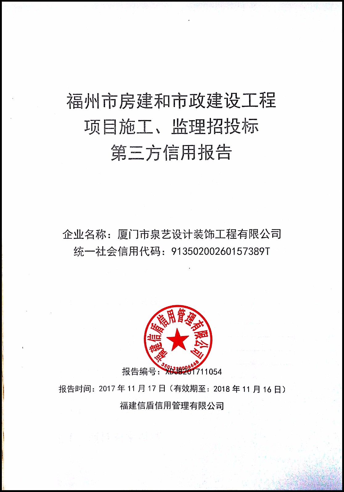 廈門市泉藝設計裝飾工程有限公司 XDJB201711054